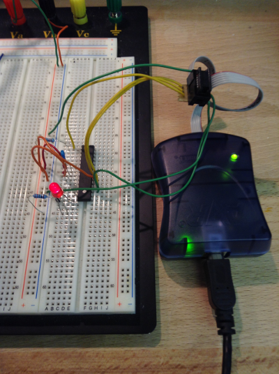 With the drivers installed correctly, I was able to see the AVRISP mkII display the correct status on its LEDs and I could then start programming the minimal “bread-boarded” μController.