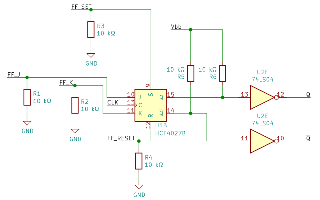 - Using the function generator to test a circuit. This was particularly useful in being able to set up a constant signal into the J-K Flip-Flop and then manually manipulate the J, K, SET and RESET pins to study their effect first hand.
