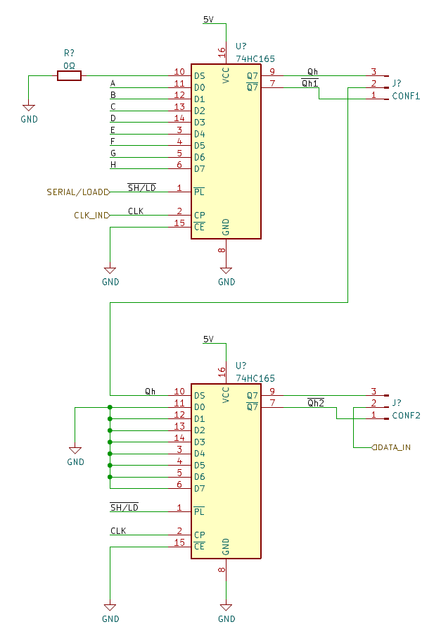 I decided to try out two ideas to achieve this. The first idea was to use a set of encoders/decoders – 74LC138 and a CD4532. These would be connected in such a way that the output of the 74LC138 would feed into the respective input on the CD4532. Using three lines, I could address up to 8 channels. In the second idea, I used a set of shift registers – 74HC5495 and 74HC165. Again, these would be connected so that the output of the 74HC5495 would feed into the respective input of the 74HC5165.