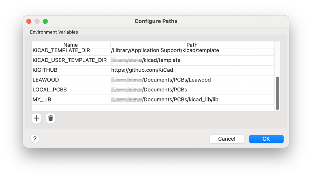 I also go between a laptop and a PC in the lab so the first thing is to set up some paths so that the artefacts can be seamlessly located between machines. Once KiCad is opened, go to the Preferences, Configure Paths… menu options. I created an environment variable called MY_LIB and pointed this to a repository where I keep all the symbols and footprints I wish to share. As long as I refer to the symbols and footprints via ${MY_LIB}, it does not matter where they are stored on the respective machine. I only needed to perform this operation once per machine.