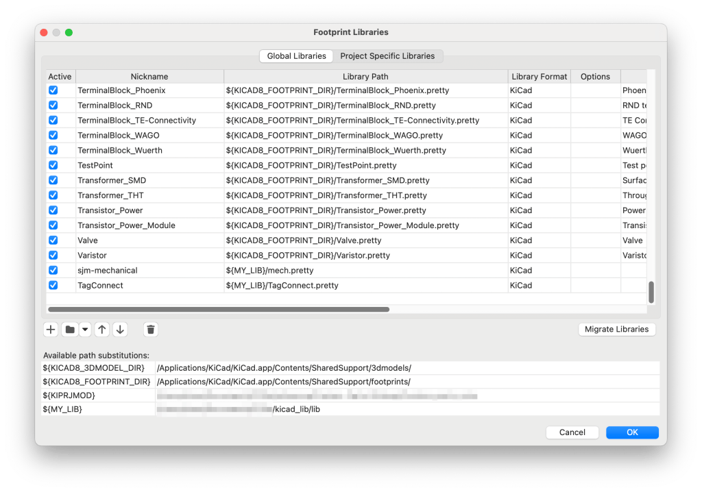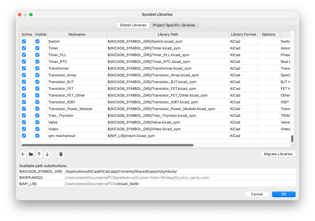 KiCad provides a comprehensive means to manage libraries of symbols and footprints. They are easy to create for each project but there are times when I need to reuse a symbol or footprint from another project. I have sifted through previous projects looking for these parts enough times to realise I needed to do something about it – and make use of the global symbol and footprint configurations.