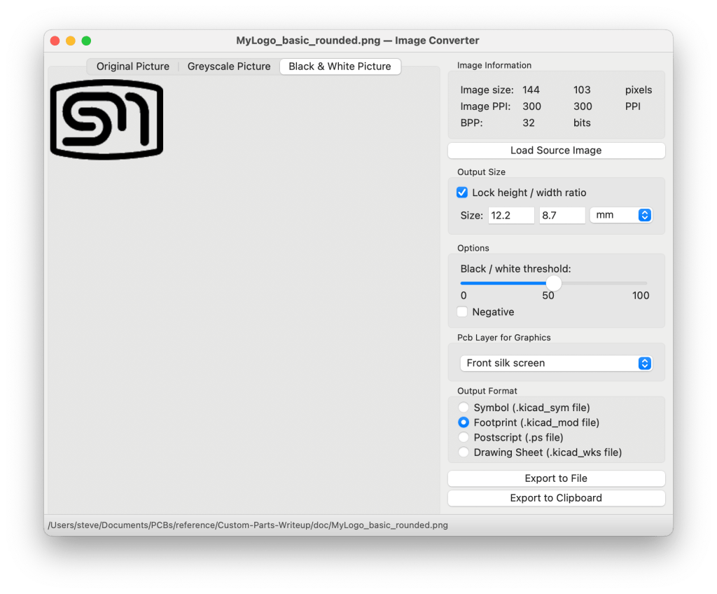 Generally, defining the footprint follows the same procedure as any other footprint. If the footprint is already given amongst the default footprints such as the mounting holes, then I use those. Logos are imported via the Image Converter that will convert a bit image to a KiCad formatted component such as a foot print for use in the PCB layout tool. In the Image Converter, it is possible to select which layer the element should appear on. Here you have the opportunity to create a logo or image that should be on the silk screen layer or to copper layer to create other logo/image effects.
