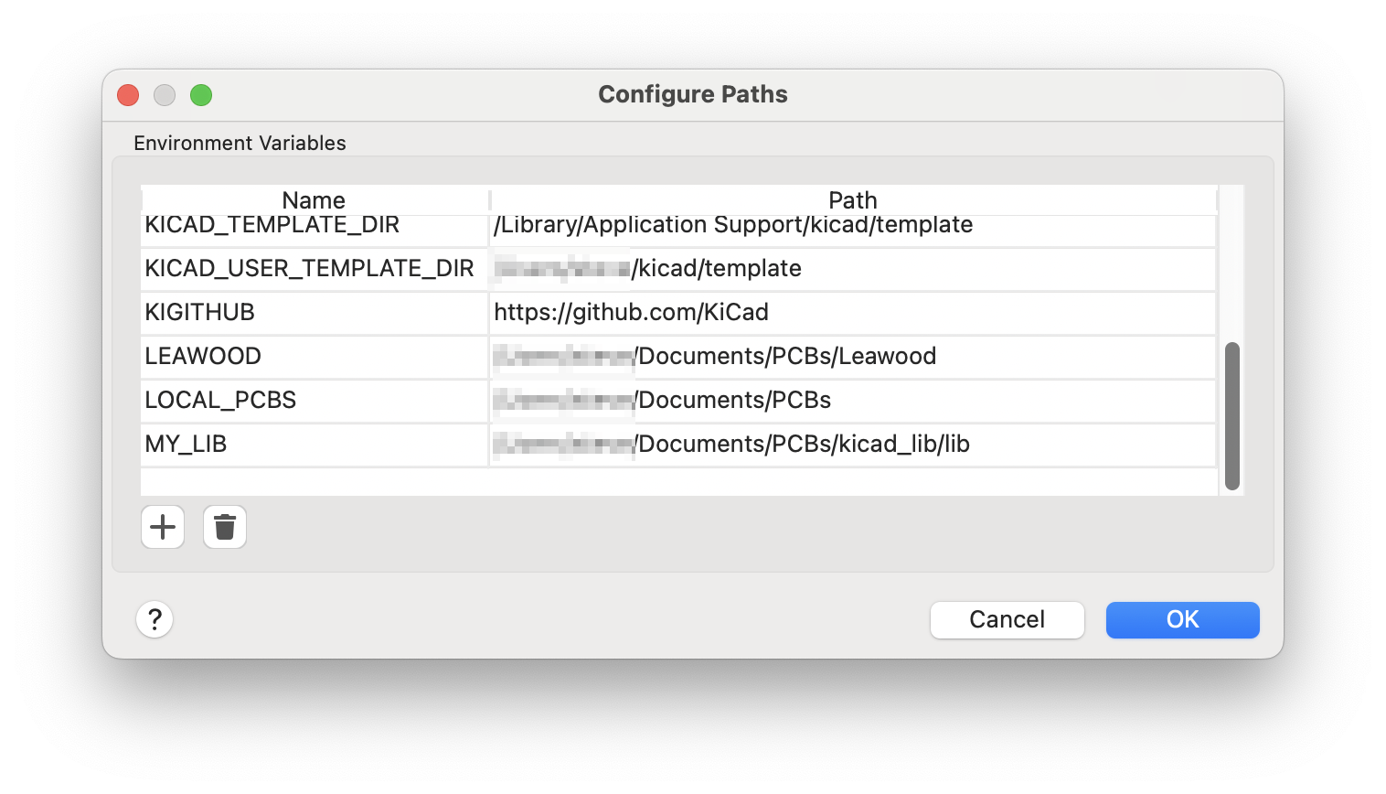 I also go between a laptop and a PC in the lab so the first thing is to set up some paths so that the artefacts can be seamlessly located between machines. Once KiCad is opened, go to the Preferences, Configure Paths… menu options. I created an environment variable called MY_LIB and pointed this to a repository where I keep all the symbols and footprints I wish to share. As long as I refer to the symbols and footprints via ${MY_LIB}, it does not matter where they are stored on the respective machine. I only needed to perform this operation once per machine.